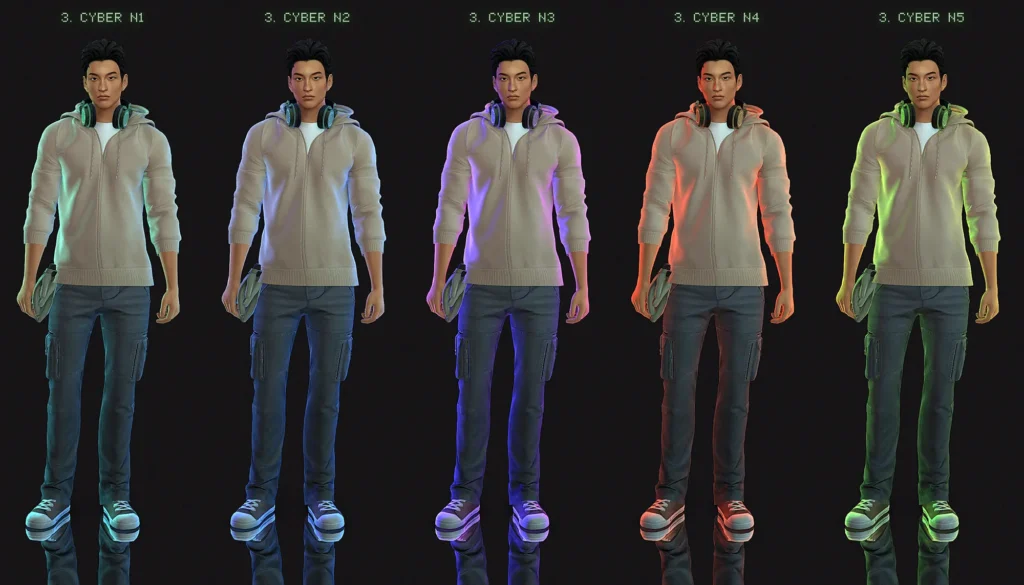 - Cyber – cool-toned, modern lighting with a futuristic feel